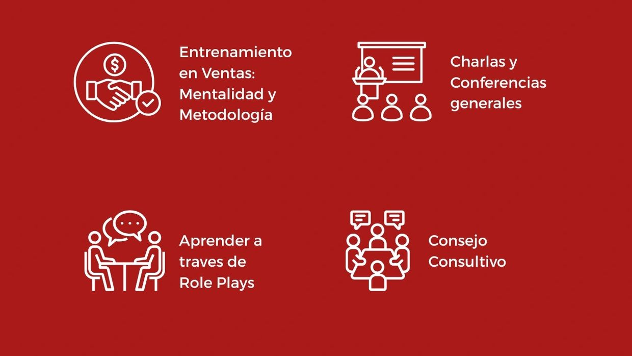 Capacidad de entender modelos de negocios. / Conocimiento de diferentes industrias. / Reconocimiento internacional en más de 10 países. / +25 años en tecnología comercial para grandes empresas. / +25 años de experiencia en Embudos de Venta. / +15 años de experiencia en Metodología y Venta Consultiva. / +3 años en Coaching Ejecutivo, Mentalidad y Conferencista.